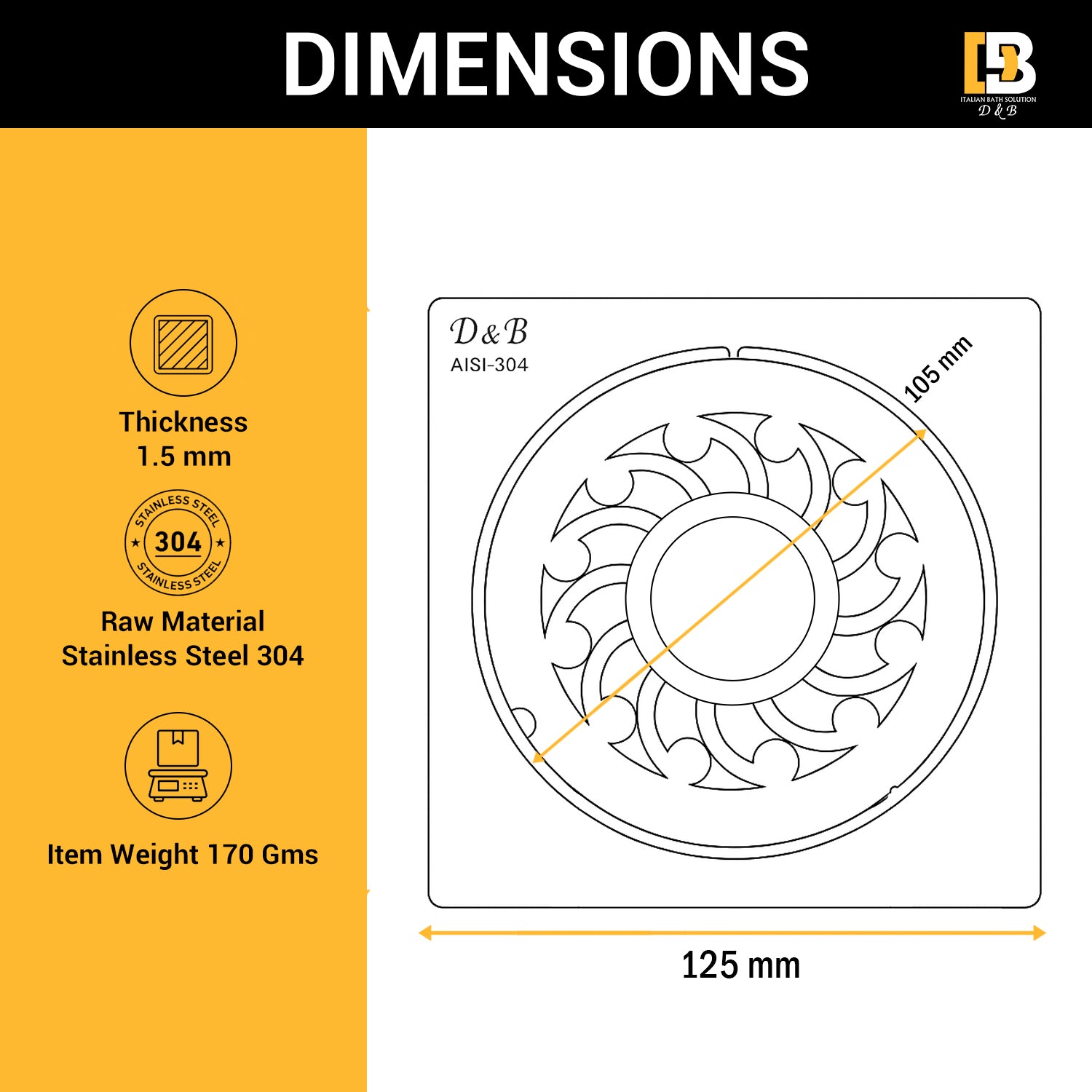 - Universal Fit: Standard 5x5 inch (125 mm) square with center hole, suitable for most bathroom and kitchen drains.