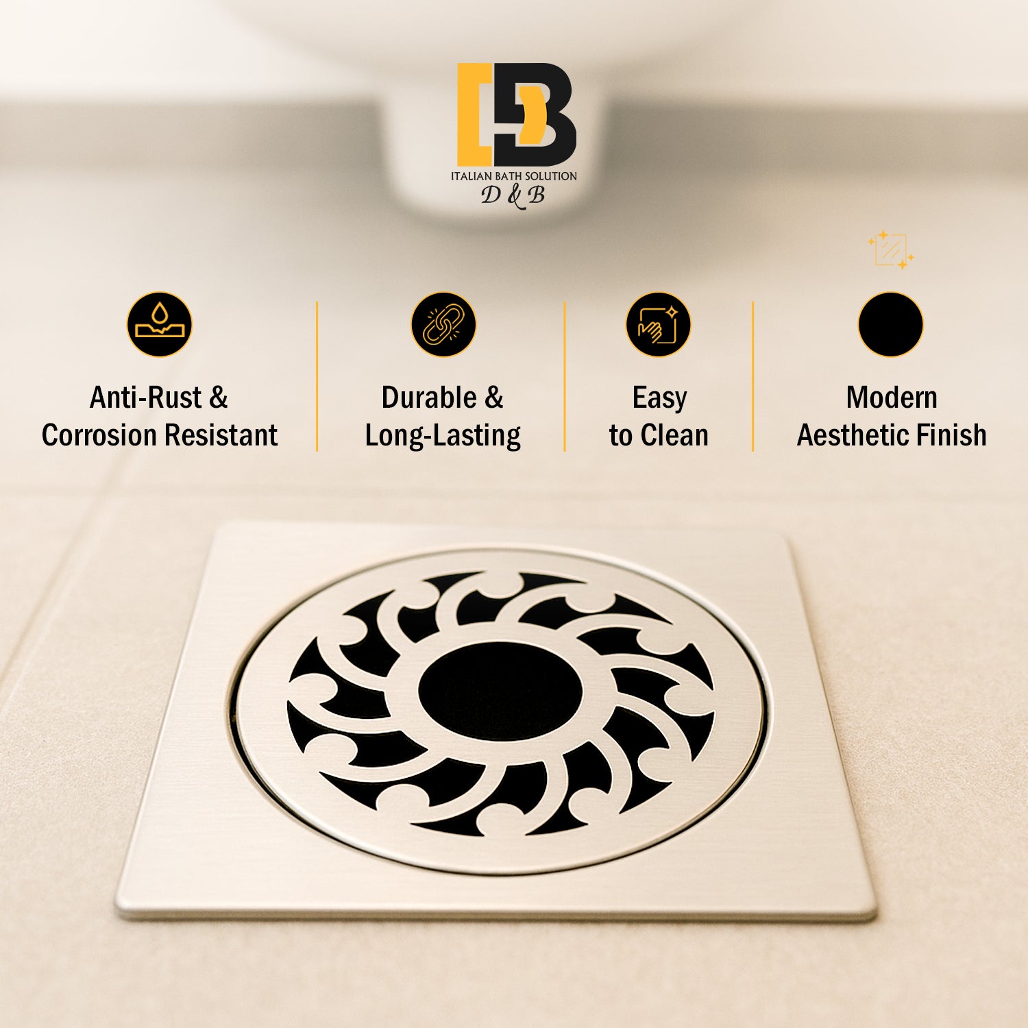 Upgrade your bathroom, kitchen, or balcony with this premium 5x5 inch stainless steel locking floor drain jali. Designed for durability, style, and functionality, this floor drain ensures smooth water flow while preventing clogs.