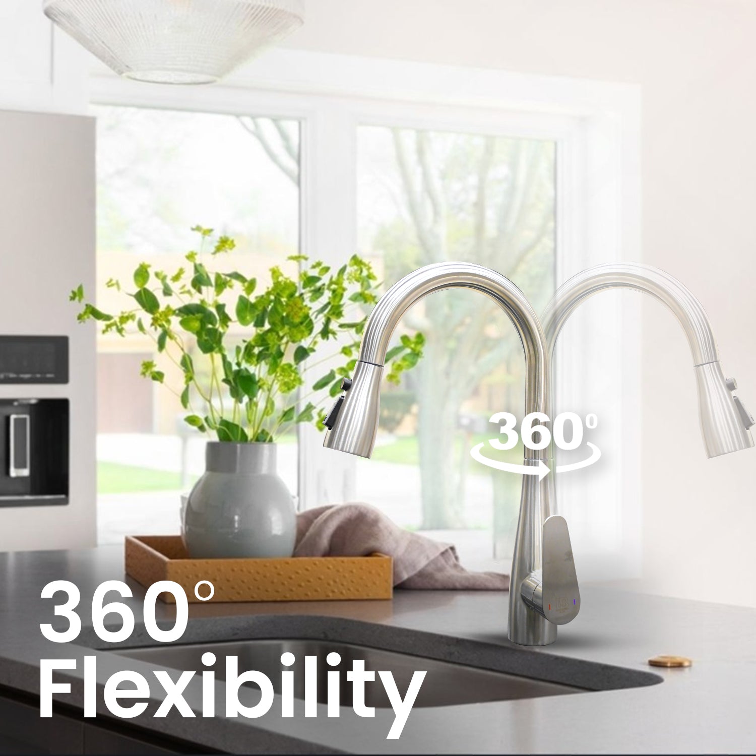✅ 360° Swivel Spout: Enjoy full sink access with a rotatable spout, perfect for double sinks or tight kitchen spaces.