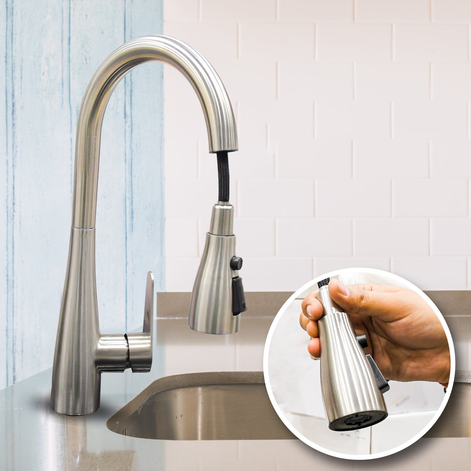 ✅ Pull-Out Sprayer Design: Flexible pull-out nozzle with smooth retraction makes rinsing vegetables, cleaning dishes, and washing the sink easier and more convenient.