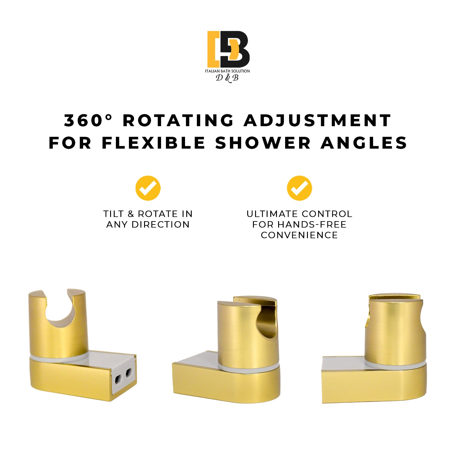 Universal Shower Head Holder Bracket(Brushed Gold) โ Adjustable Shower Mount for Handheld Shower heads ABS Wall Mount